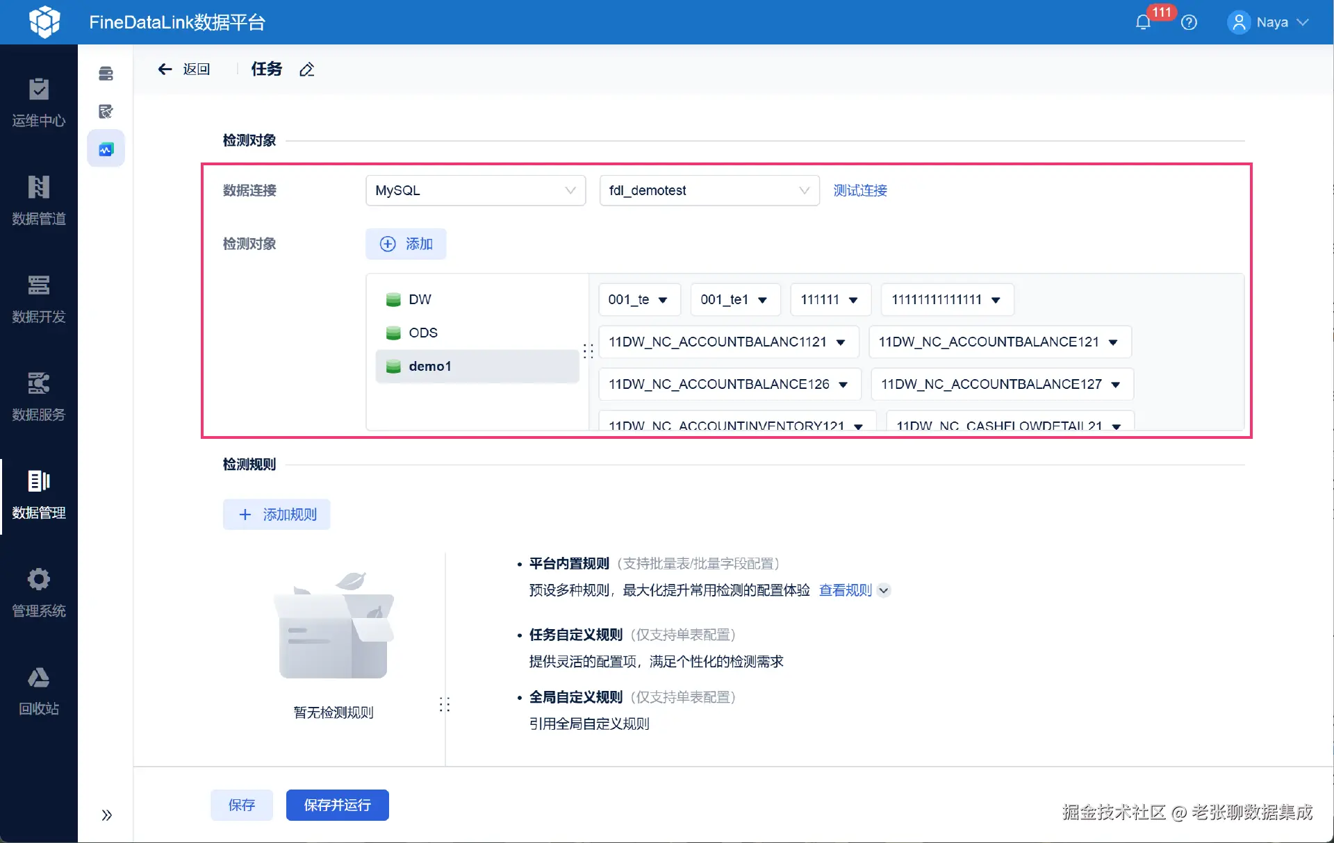 - 在数据流动中设卡检查:在数据从业务系统流向数据仓库的过程中,部署一些检查规则。 发现不符合标准的数据,就自动拦截并发出告警,让负责人去处理。我自己在项目里经常用 FineDataLink 这款数据集成工具来实现这一点。它可以在数据集成和处理的流程中,非常方便地配置数据质量校验规则。 比如,可以自动检查“客户行业”字段的值是否在标准代码值范围内,如果发现‘制造业’这样的非标数据,能够自动告警、拦截,并通知负责人处理,从而防止“脏数据”污染下游的数据仓库和分析模型。
