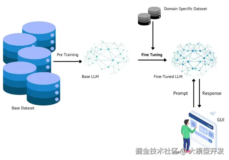 微调(Fine-tuning)是 NLP 中一种强大的技术,指对预训练语言模型进行进一步训练,使其适应特定任务或专门领域。该过程充分利用大型通用模型已有的知识和能力,并对其进行定制化调整,从而在目标应用场景中实现更优性能。