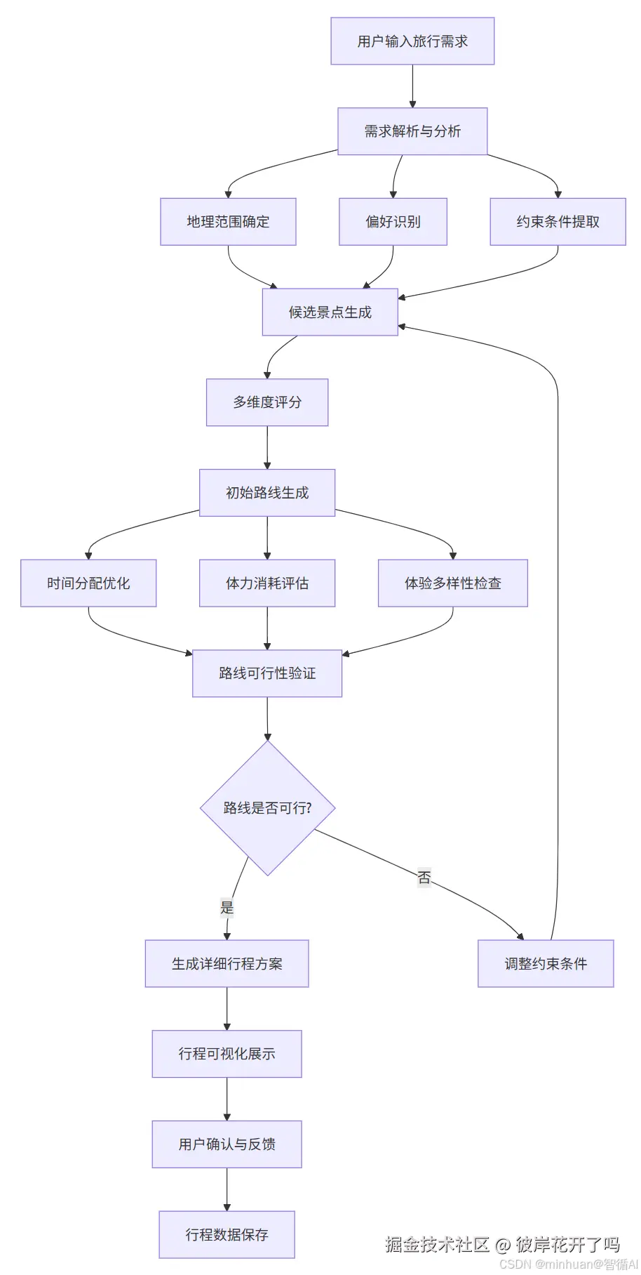 - 输入接收与解析,系统接收用户输入的旅行需求,可能包含: