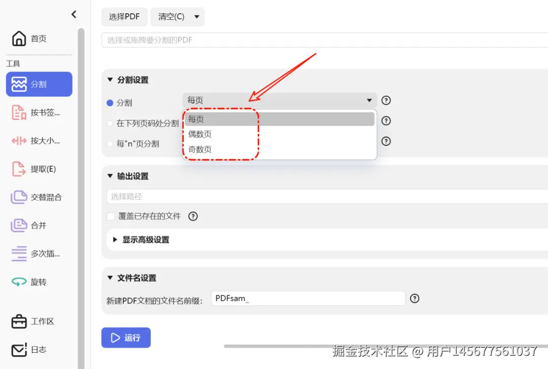 你能用它:拆分PDF:按奇数页、偶数页,或一页一页分开;