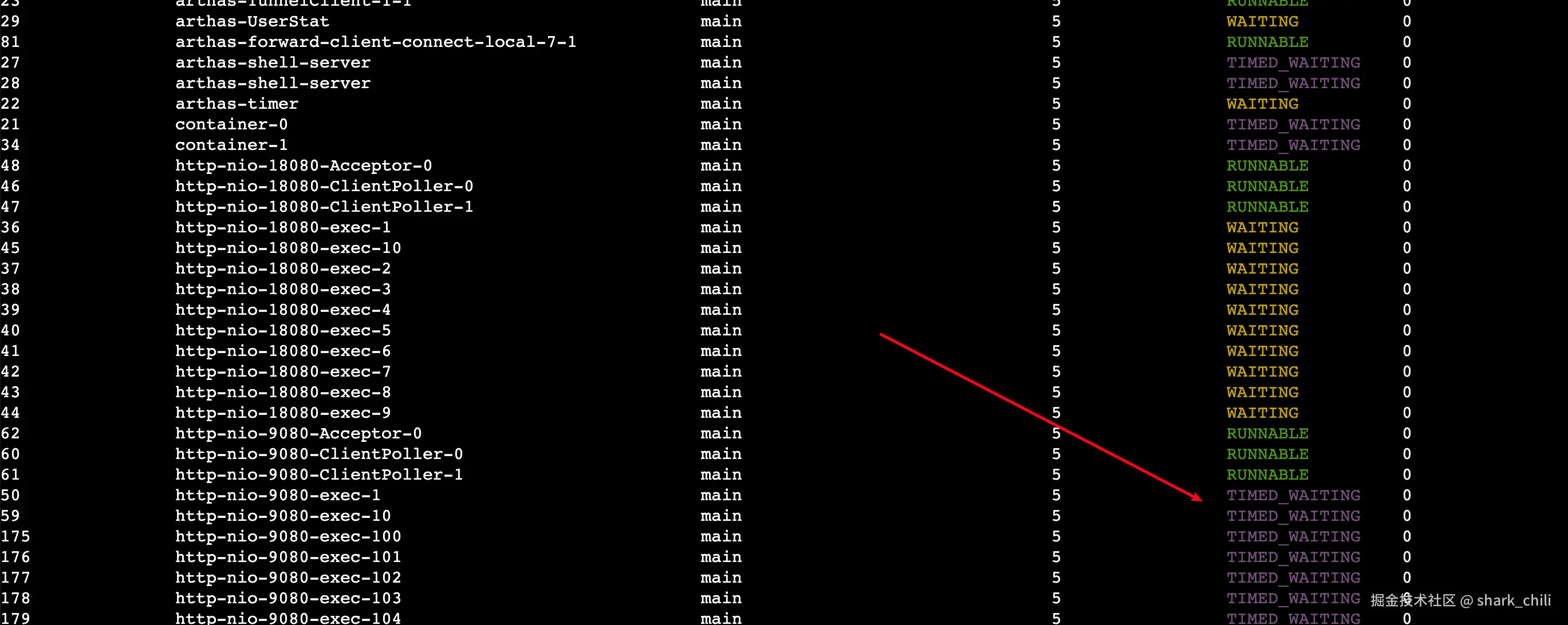 通过上文的tunel入口,我们很快的进入到程序内部,简单快速的定位的tomcat那些存在time wating的问题线程: