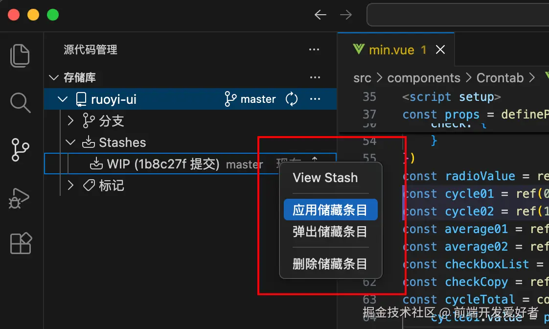 以前 VSCode 对 stash 支持几乎没有,只能敲命令。
