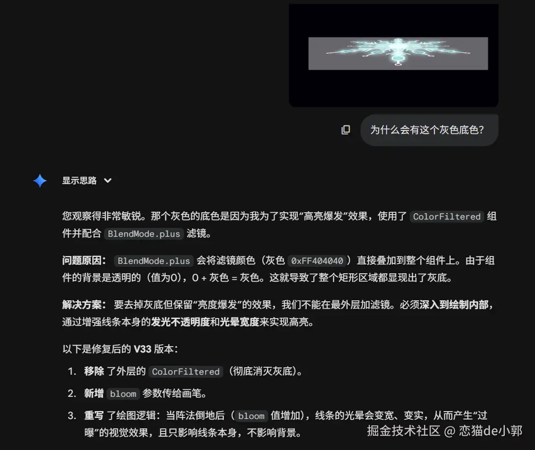 Flutter 的 Canvas 其实并没有“发光”属性,所以 AI 代码通过 “双重绘制” 模拟发光:
