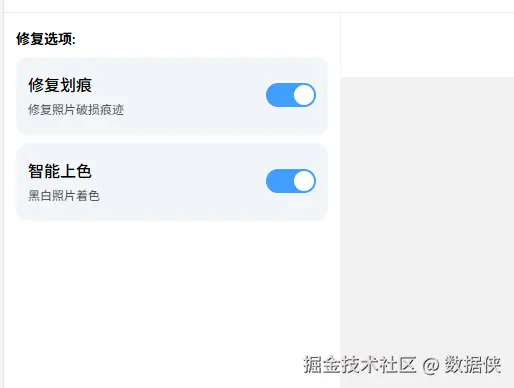 2、确认选项:默认勾选“修复划痕”和“智能上色”,如果只想单修划痕,关闭智能上色即可。