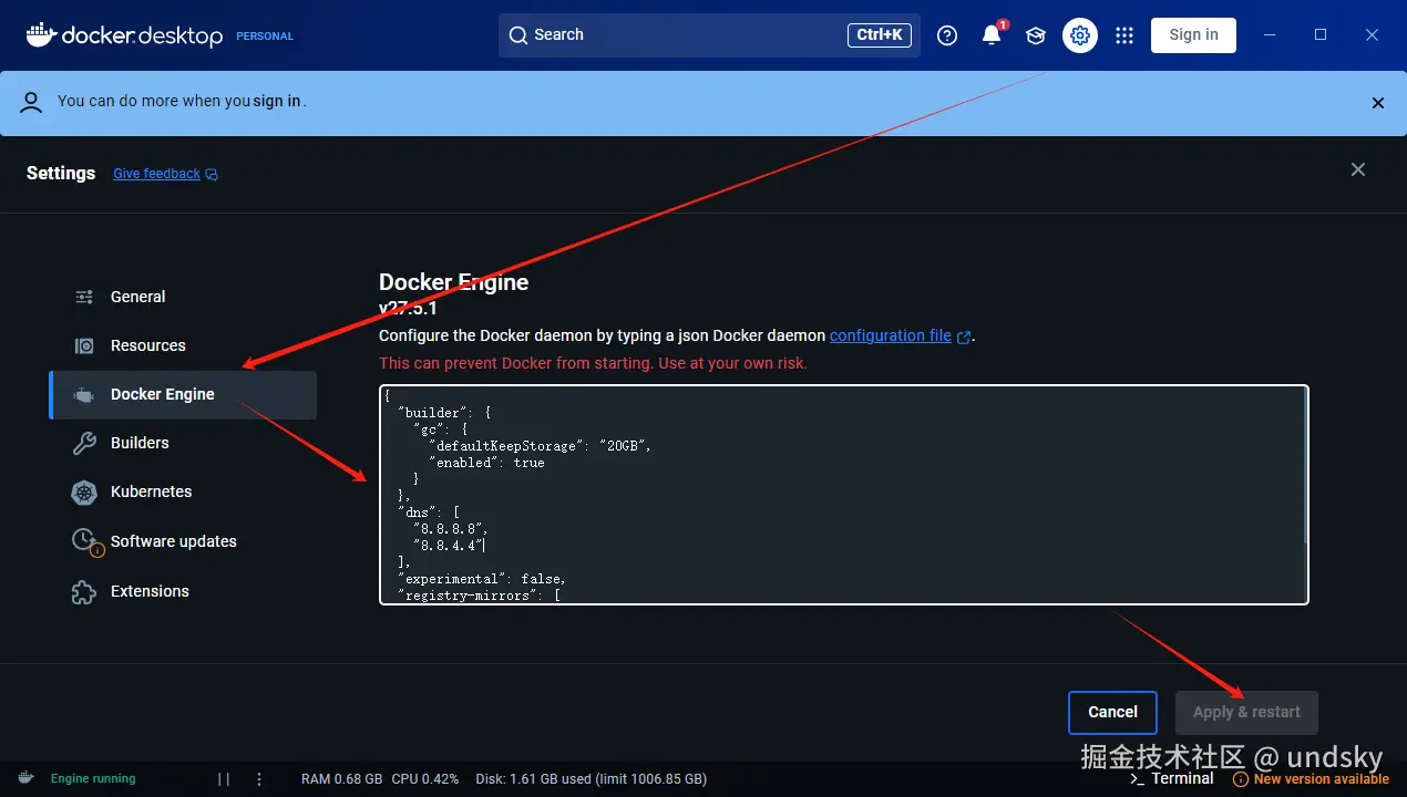 作用: DNS 就像是互联网的"电话簿",帮助电脑找到网站的地址。配置 DNS 可以让 Docker 容器更快地访问网络。