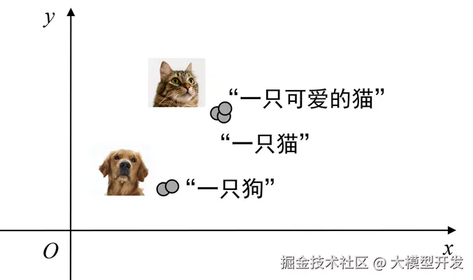 一张猫的图片,和文字“一只可爱的猫”,它们的向量坐标将无限接近。
