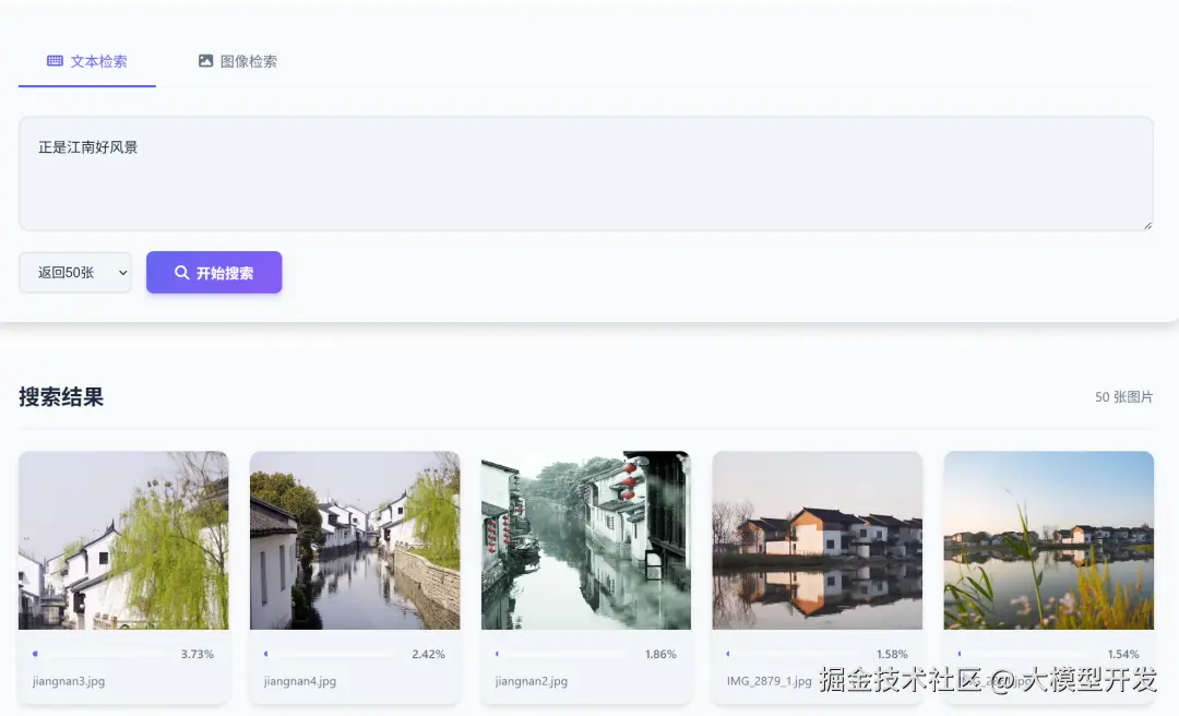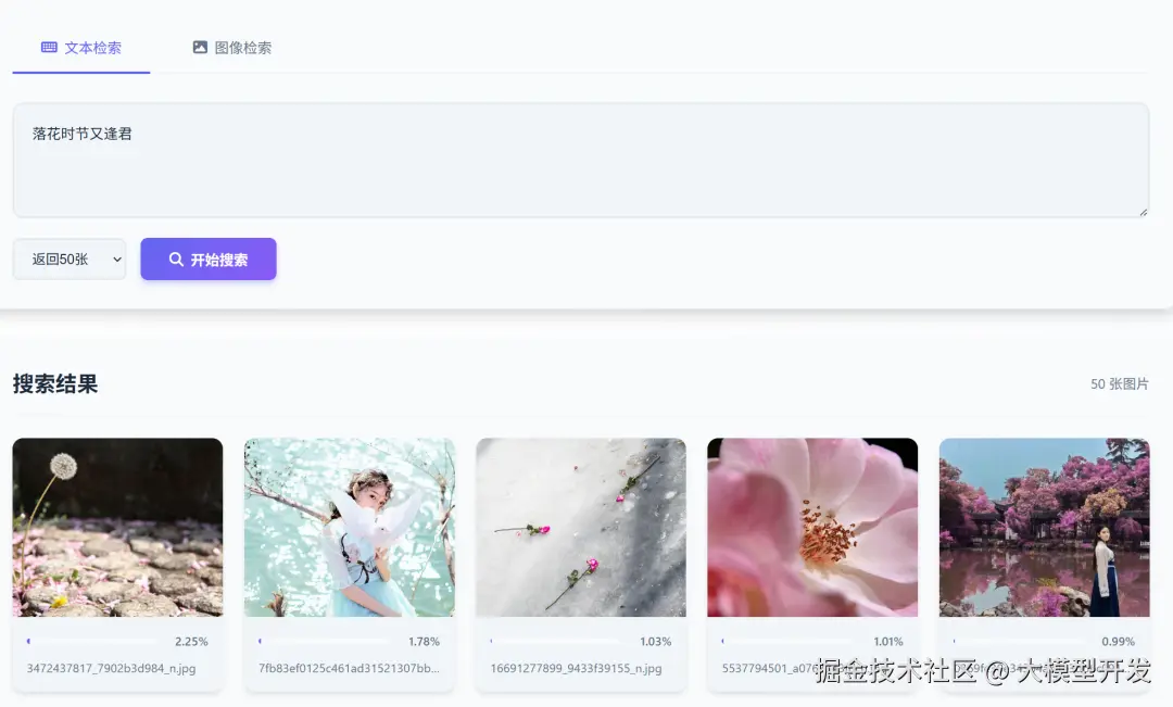 我们通过两句诗词:“正是江南好风景,落花时节又逢君”,分别在一个庞大的图像库中,检索它们对应的图像,就实现了这样一个效果。