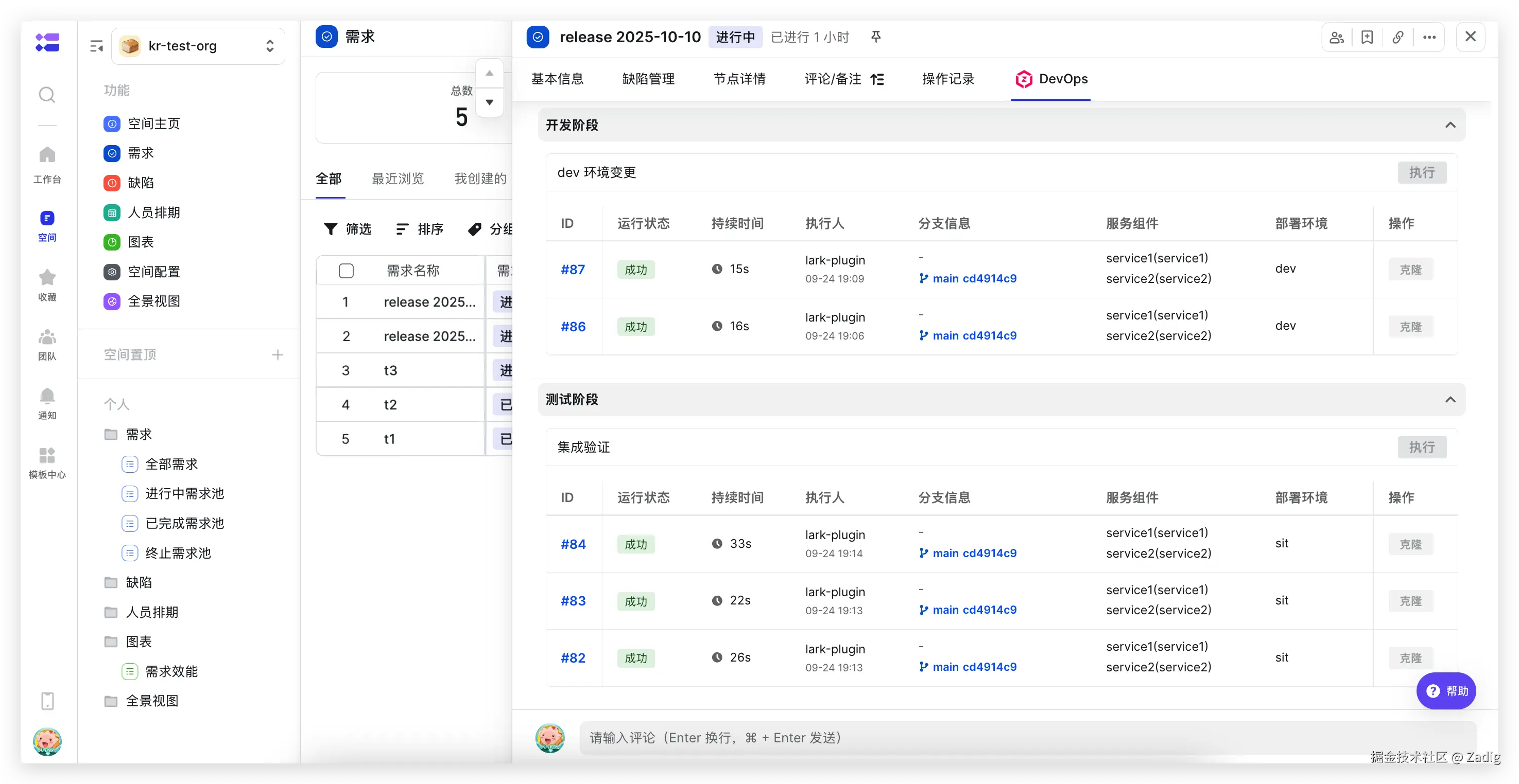 Zadig v4.1.0 与飞书项目及协同套件实现深度集成,构建从需求到发布的全链路自动化协同。研发任务可直接触发构建、部署与发布审批,无缝衔接项目管理与工程交付,在提升自动化水平的同时,关键打通了管理意图与工程执行间的数据壁垒,形成可观测、可反馈的协同闭环,为团队效能与软件质量的持续提升提供坚实支撑。