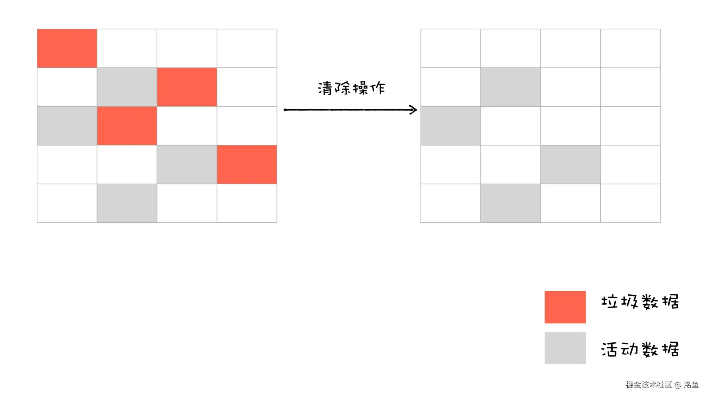 整个标记 - 清除(Mark-Sweep)的过程相当于清理上图中红色部分区域的过程。