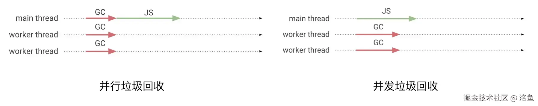 并发垃圾回收和并行垃圾回收是完全不同的用一张图来表示
