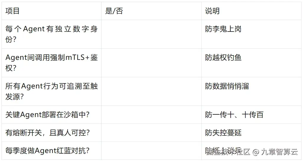 全打钩?恭喜,你已站在Agentic安全第一梯队。有空白?别慌—— “不怕慢,就怕站;不怕错,就怕瞒”。