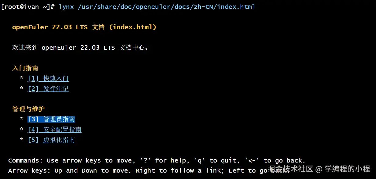 openEuler 的核心亮点在于,它将整个在线文档门户打包成了一个可以通过 DNF 直接安装的软件包——openeuler-docs。