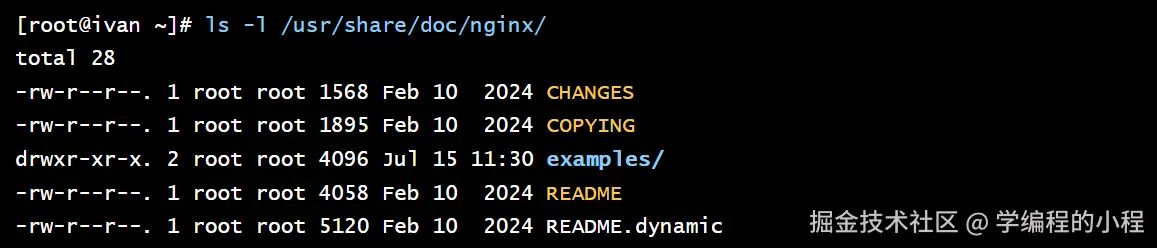 | 包内文档 | rpm -qd <pkg> / ls /usr/share/doc/<pkg> | 提供包特有的 README、示例和授权 |