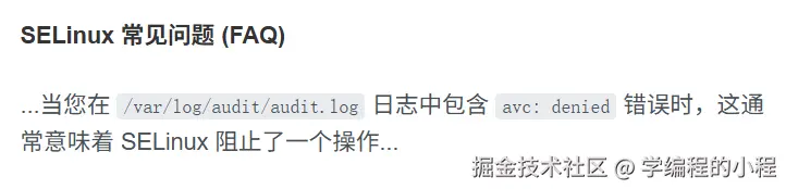 https://docs.openeuler.org/zh-CN/Security-Guide/SELinux-FAQ.html,即可阅读格式更佳的文档或分享给团队。