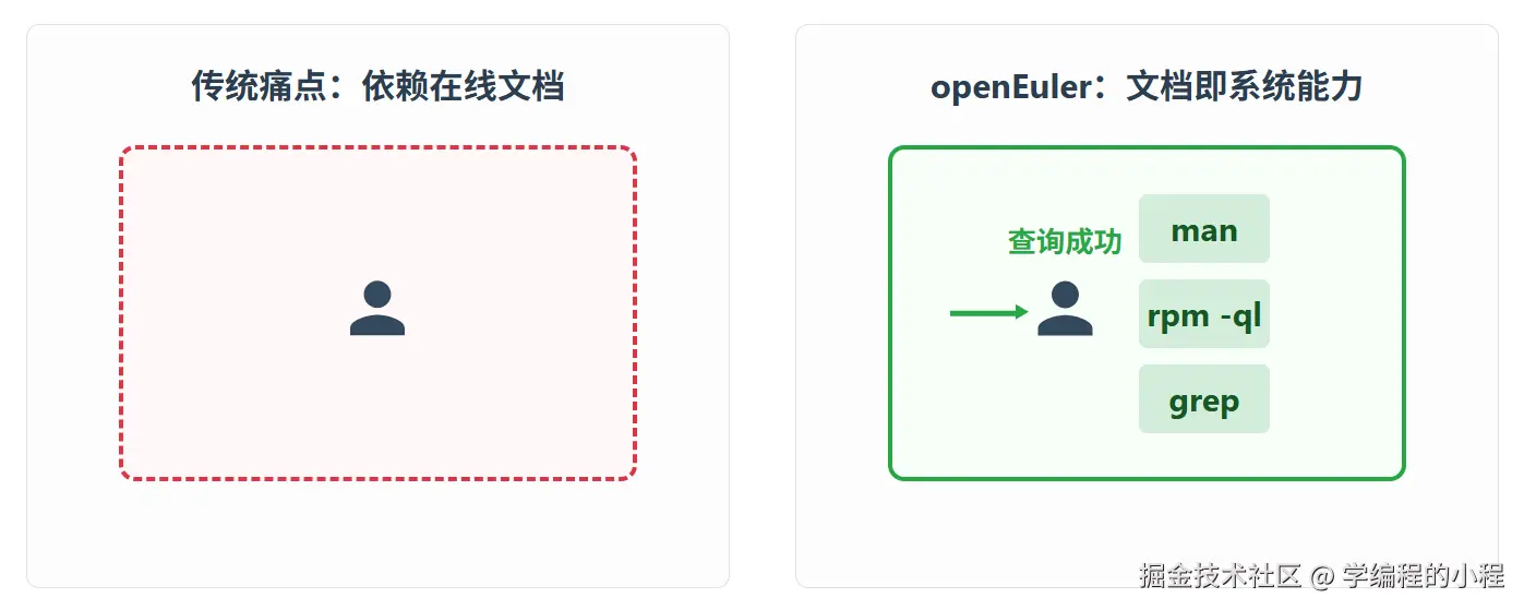 | 离线文档包 | dnf install openeuler-docs | 离线可用、可被命令行工具深度搜索 |