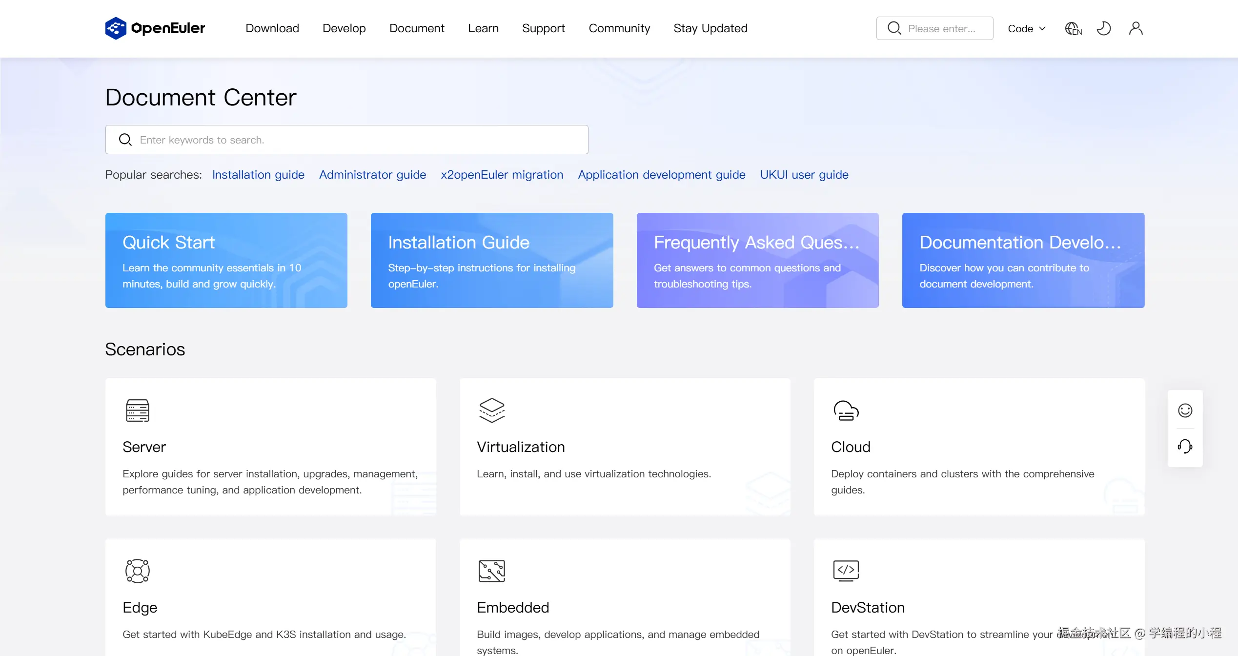 openEuler 社区提供了一个结构清晰、内容全面的在线文档门户,作为所有知识的中心索引。 官方地址: https://docs.openeuler.org/