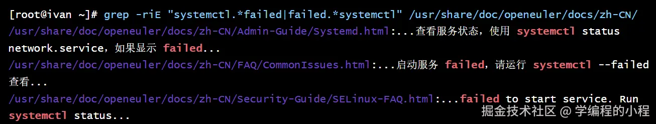 grep -riE "systemctl.*failed|failed.*systemctl" /usr/share/doc/openeuler/docs/zh-CN/