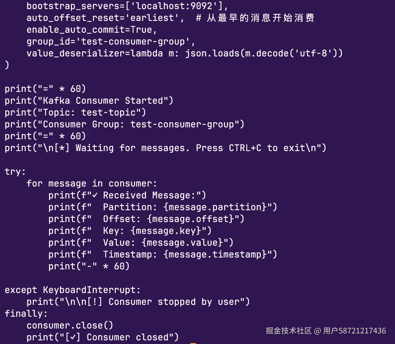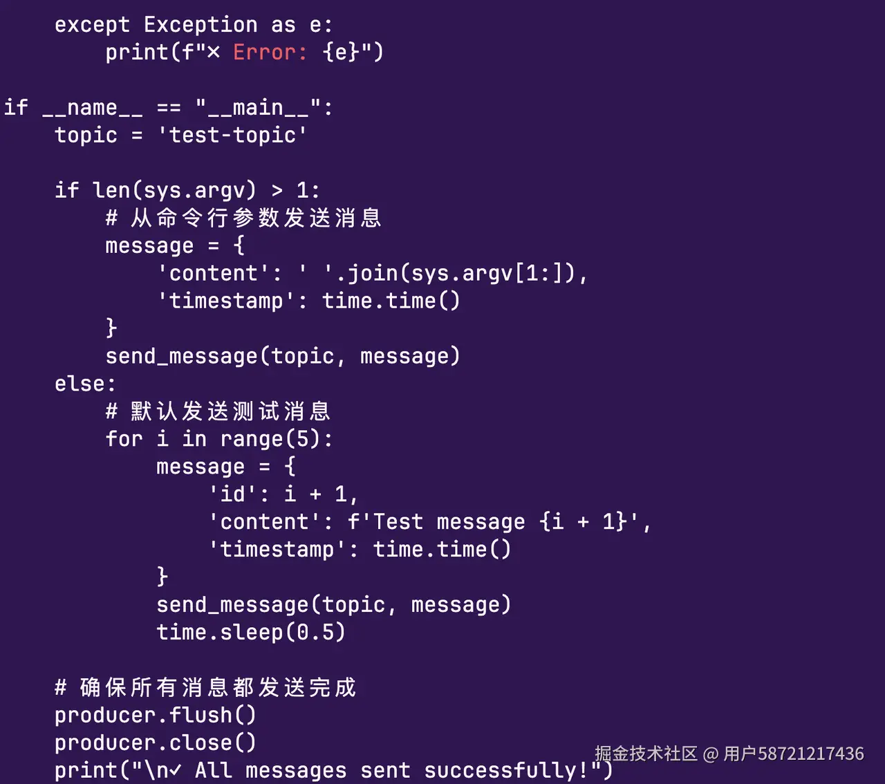 代码很简单,用kafka-python库连接Kafka,支持JSON序列化。