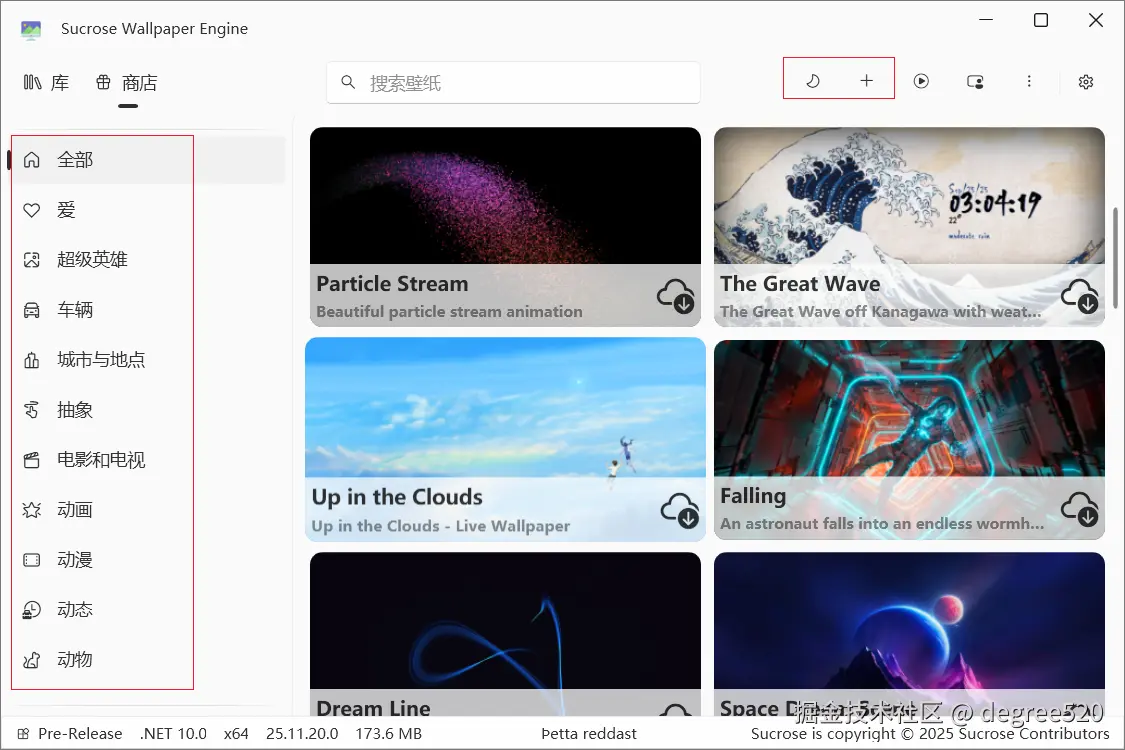 - 自建壁纸:拖入本地视频即可自动生成动态壁纸,支持 4K 及以下分辨率,创作属于自己的桌面风景。