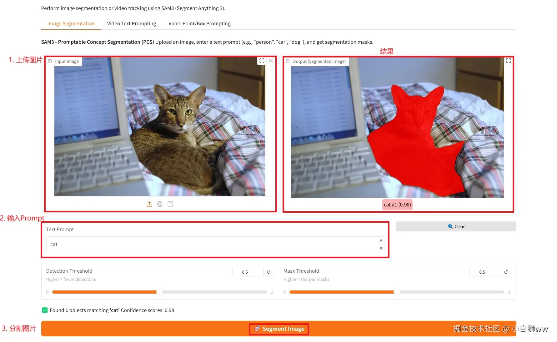 - Mask Threshold:阈值越高,生成的掩码边界更清晰、更锐利。