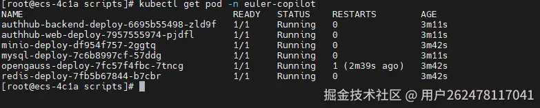 所有 Pod 已正常运行在 euler-copilot 命名空间: