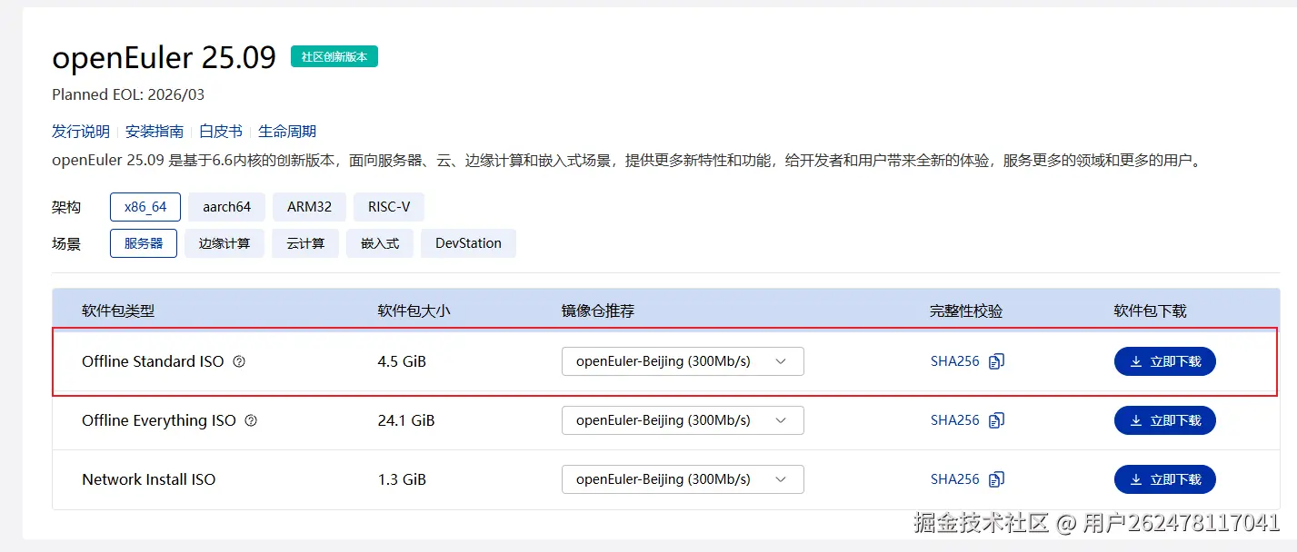 下载openEuler 25.09的Offline Standard ISO软件包(离线标准ISO安装包)