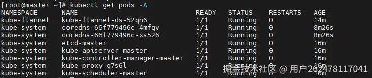 kubectl get nodes和kubectl get pods -A验证节点和 Pod 状态均为 Ready 和 Running。 -