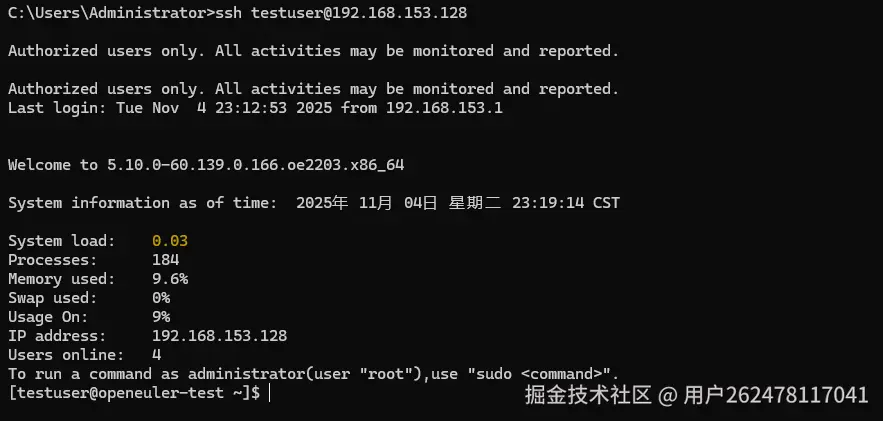 本次针对 openEuler 22.03 LTS x86_64 在 VMware Workstation 虚拟化环境下的安全评测,通过系统化的测试验证了该操作系统在企业级安全防护方面的综合能力。评测涵盖了强制访问控制、网络防护、系统加固和漏洞审计四个核心维度,全面展现了 openEuler 作为自主创新操作系统在安全领域的技术实力。