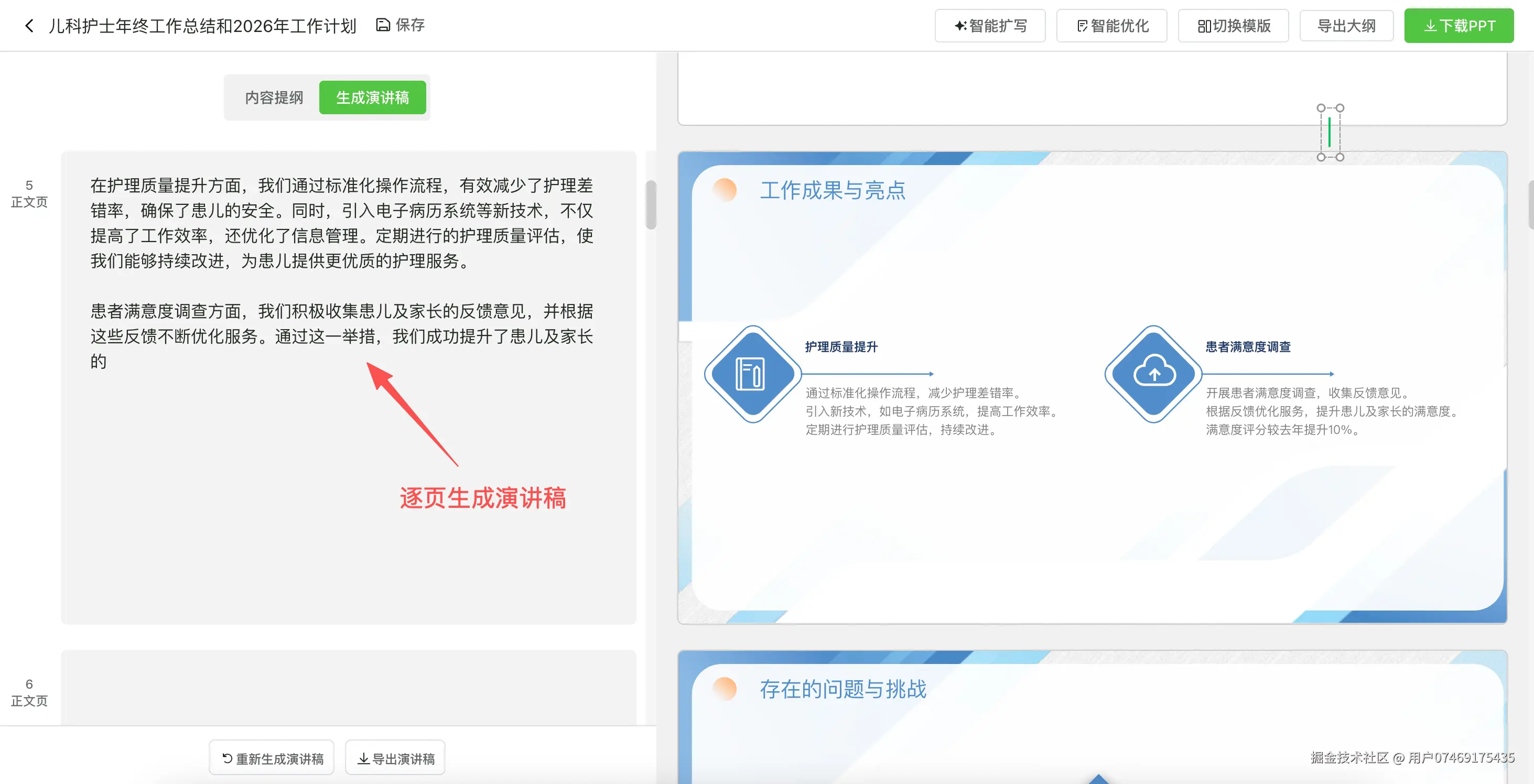 格式兼容与输出:不用下载软件,有网就能用。不管是手机还是PC电脑,都能下载标准的pptx格式,跨系统打开无乱码,彻底解决格式兼容问题。