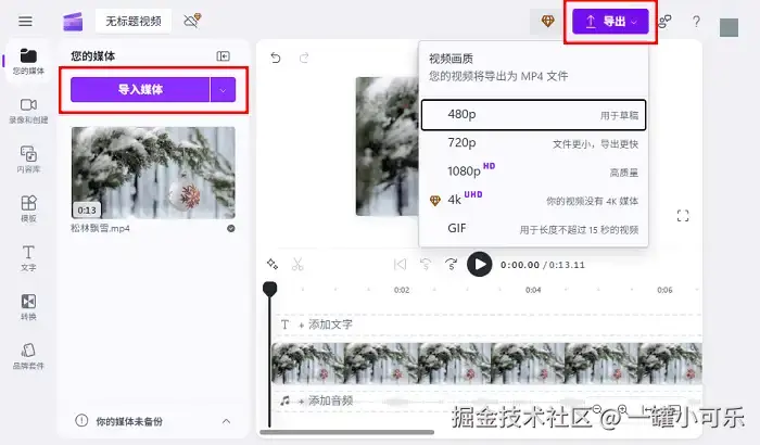 但是ClipChamp软件的加载速度有点慢,而且,在输出分辨率的选择上,您可以选择的低分辨率并不多(如图所示)。