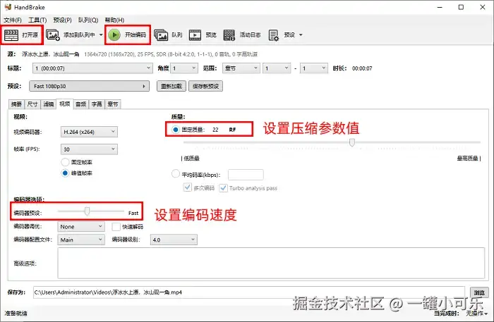 另一款电脑视频压缩软件——HandBrake的压缩效果非常好,您可以先将视频的分辨率进行降低 (如4K变成1080P、720P等) ,然后再设置编码器的速度、压缩的质量参数,从而实现视频的明显“瘦身”。
