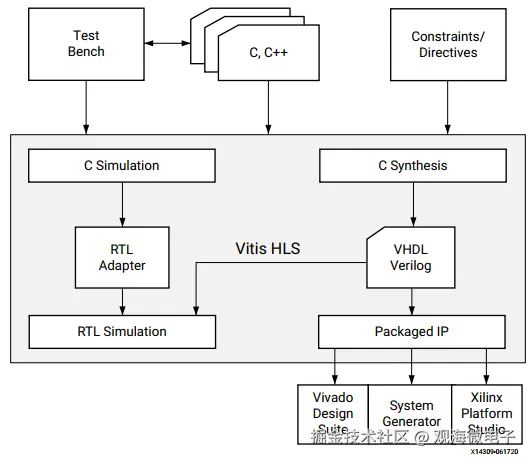 算法或软件的设计和仿真都基于C/C++,通过HLS平台导出打包好的IP RTL代码,最后将该打包的IP加入到主工程使用。