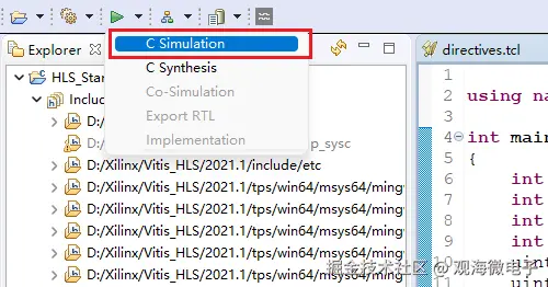 (1)对工程进行仿真,在菜单栏中点击“C Simulation”。