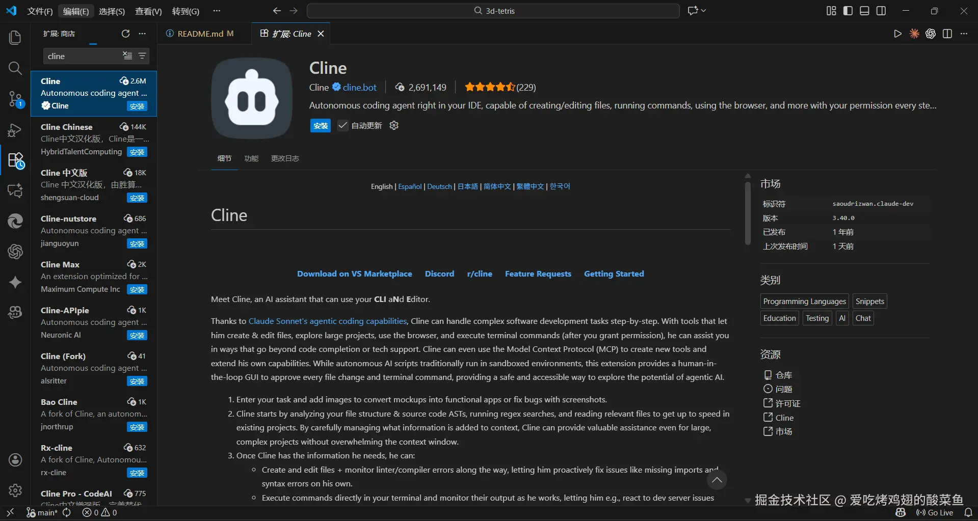- 安装VSCode插件:Cline