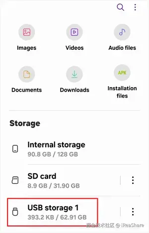 您的手机应该会自动检测到U盘。您可能会看到一条通知,或者您可以打开手机的文件管理器应用。