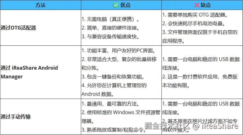 现在您已经学会了三种将安卓手机照片传输到U盘的有效方法。您甚至可以使用iReaShare Android Manager在电脑上管理照片。有了这款软件,无论您是想传输、备份、恢复还是整理文件,都能轻松完成。
