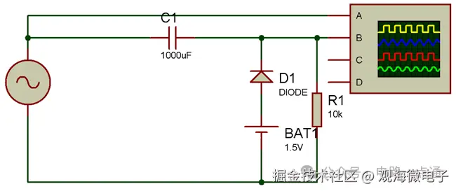 当负循环箝位/移位高于零电压电平时,箝位电路称为正箝位器,因为整个信号都移位到正极。这是一个非常简单的电路设计,您只需要按照下面的电路图进行操作: