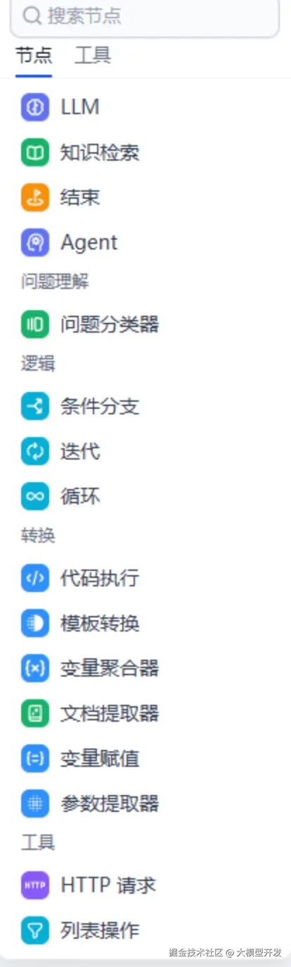 我们可以通过Dify的工作流结合多种工具与节点。它们会进行协作进而实现工作流的功能。