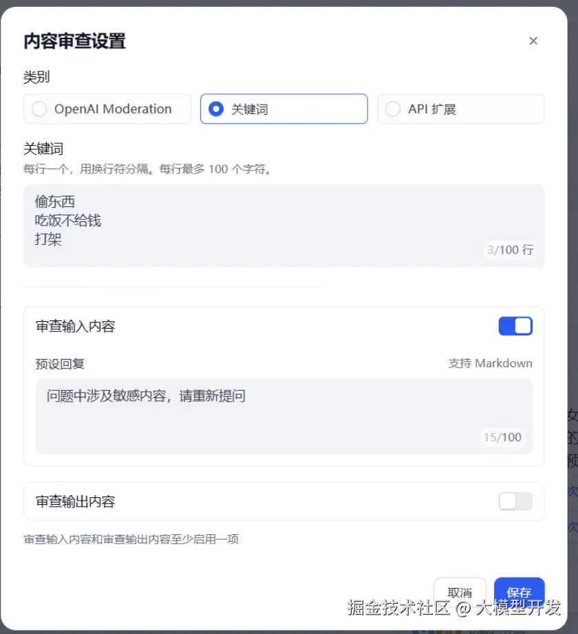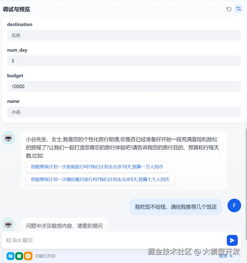 3.2.3 在功能中添加对话开场白和内容审查等功能