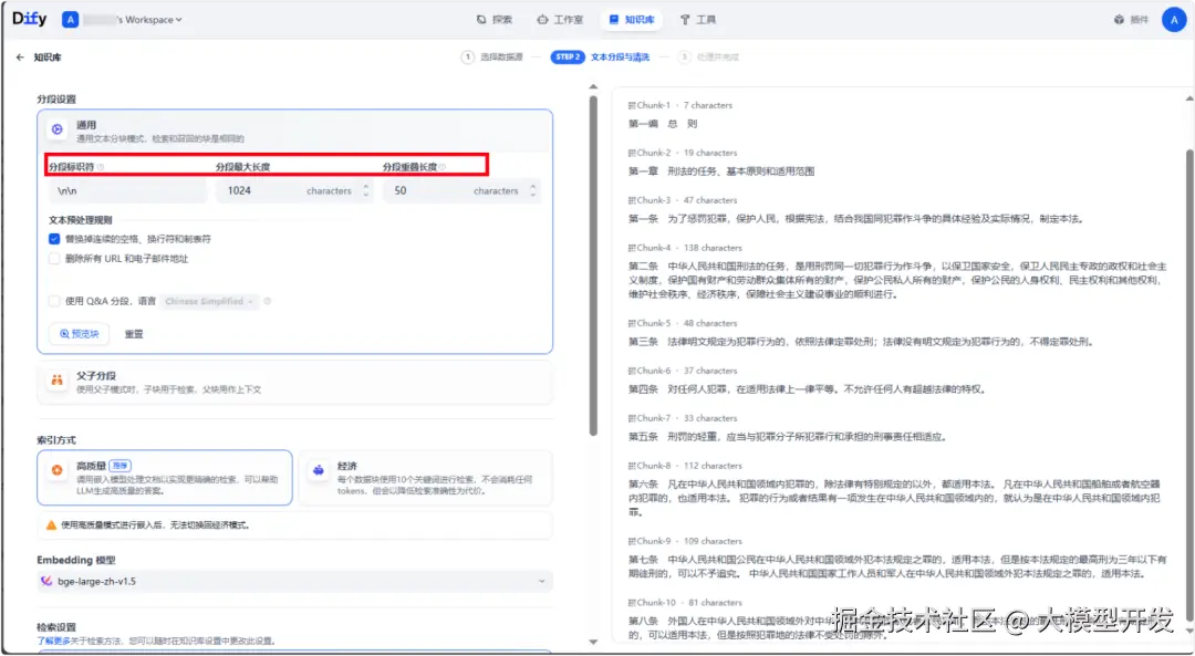 如果是\n则是以换行为一个分段;如果是\n\n则是以一个段落为一个分段。点击预览块查看目前块划分的情况。