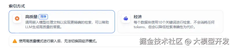 这里自动选择高质量。高质量的准确性更高,但是token消耗也会增加。我们这里使用的是部署到本地的模型,所以没有影响。