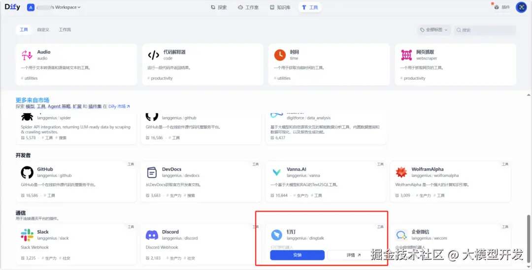 首先在Dify的工具中添加这个钉钉群机器人工具