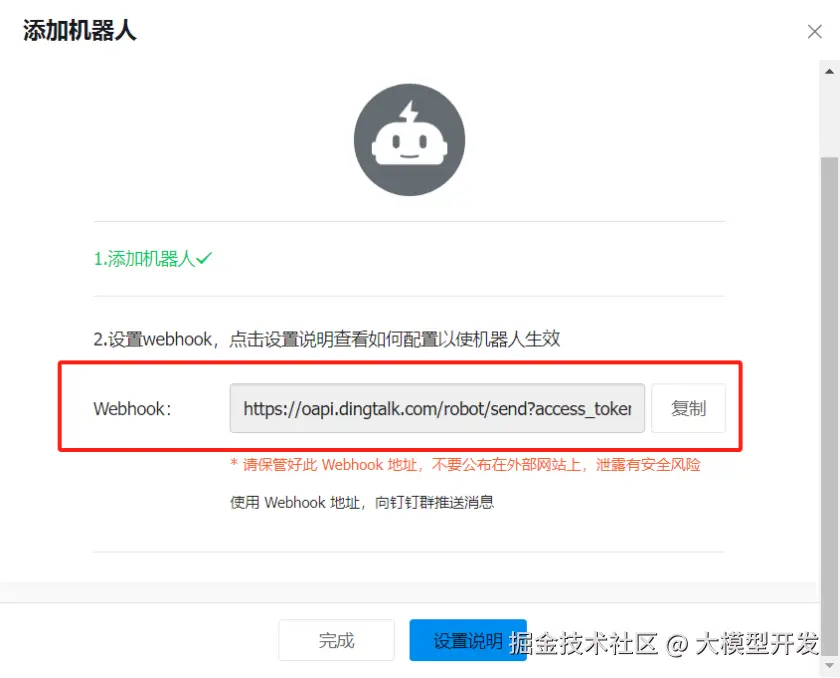 保存下来这个Webhook,后面也会用到