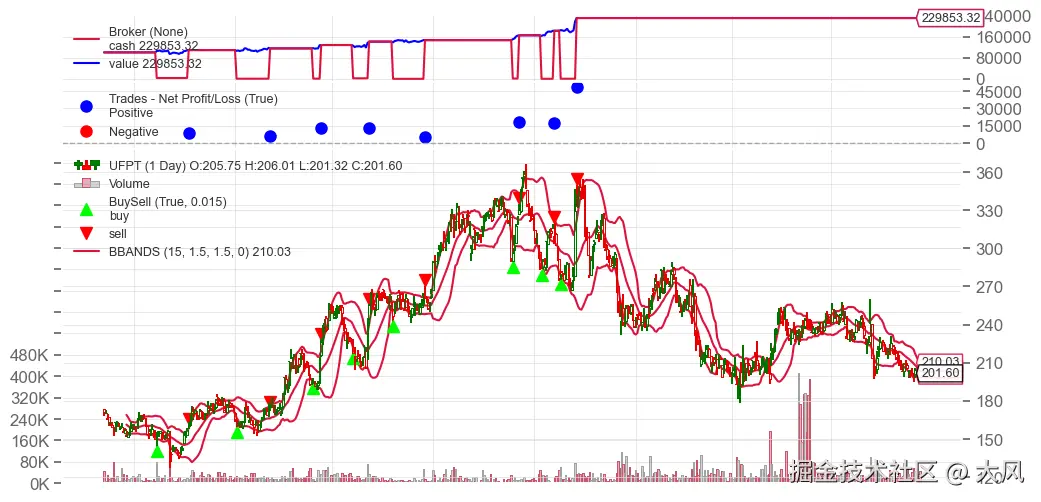 实战数据剧透: 在我们对 UFPT 的回测中,利用“布林阵法”的无趋势回归策略,在两年内实现了 129.85% 的收益,年化高达 32.56%。