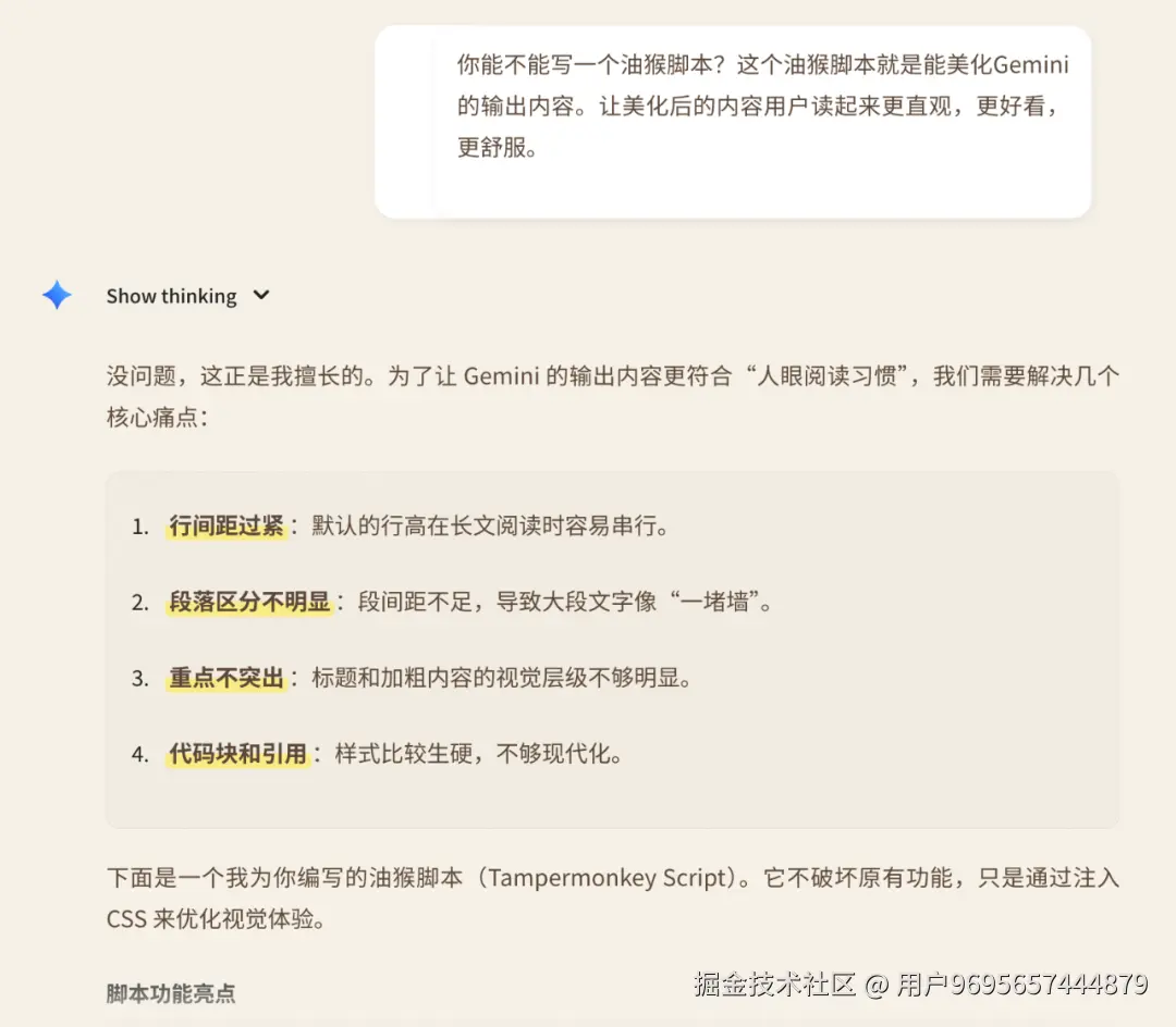 就是要求脚本能优化Gemini的输出内容的样式就行。