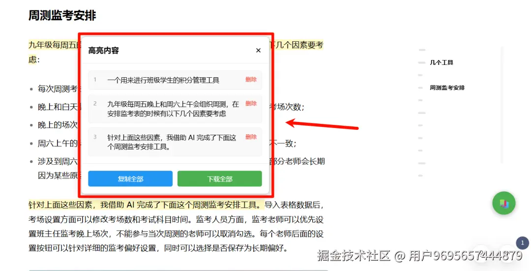 当时让Deepseek来写代码,实操生成了一个「网页文字高亮与收藏工具」的油猴脚本,可以随时在网页上划词高亮文字,并且可以在悬浮窗里查看和管理当前网页下高亮了的内容。