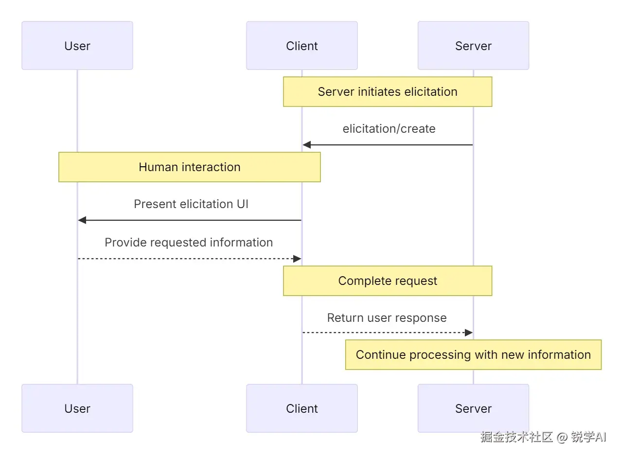 Elicitation(引导)允许服务器在交互过程中向用户请求特定信息,从而创建更具动态性和响应性的工作流。