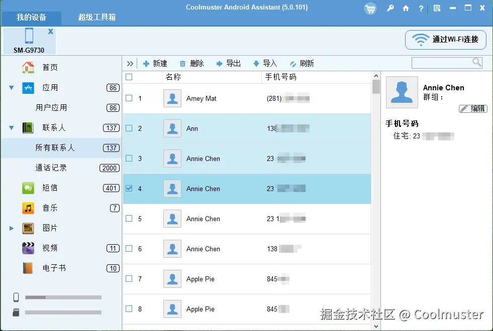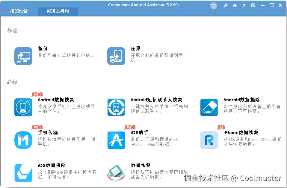 当您寻找用于管理和传输文件的PC版中兴软件时,许多软件都具备基本功能,但如果您有一些定制化的需求呢?在这种情况下,您需要一款移动软件专家——Coolmuster Android Assistant 。为什么说它是专家级工具呢?因为它不仅体积小巧、易于使用,还能根据您的需求进行选择性传输和打包传输。当然,它还拥有许多其他功能。现在就让我们来了解一下吧。