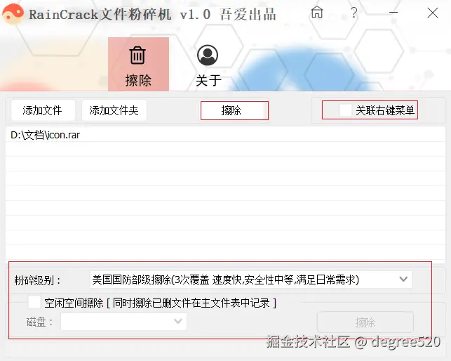 - 右键集成:勾选“关联右键菜单”,日后在资源管理器即可直接“粉碎”文件,无需再打开主程序。