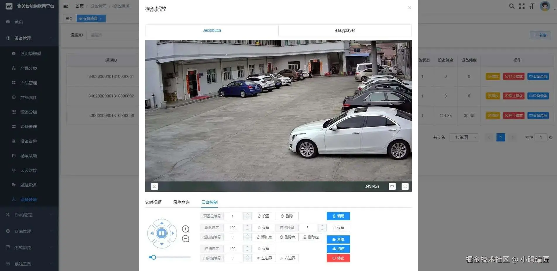 | 视频监控 | 基于 GB/T28181 协议接入主流厂商摄像头,实现直播与实时监控 |